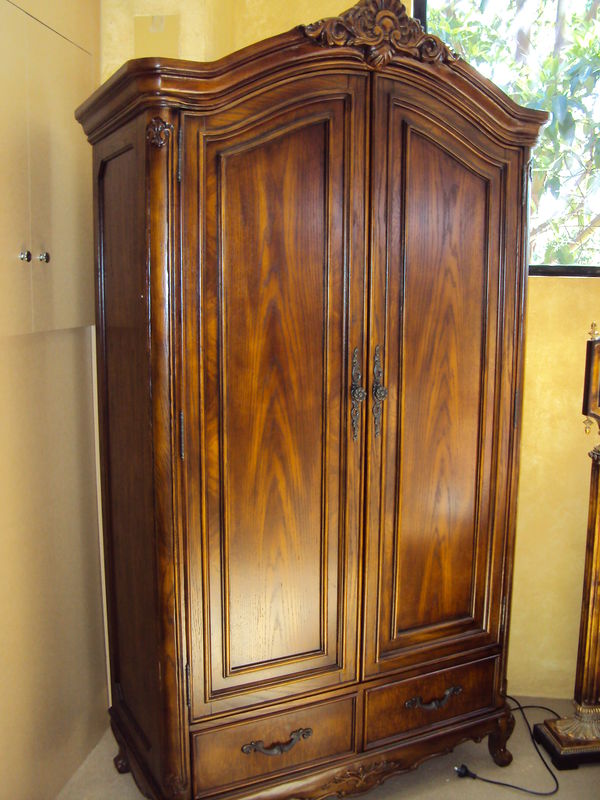 Solid American Oak timber Armoire with warm veneer features rail for hanging your precious garments.